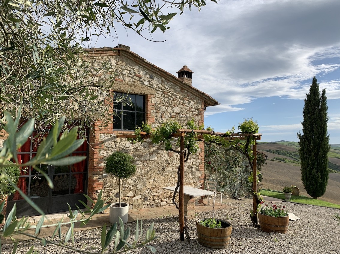 - 1 bedroom 1 bathroom - is ideal for a couple, designed by the architect owner in what was the farmhouse's old barn, a little architectural jewel from the beginning of the century. Set apart from the main house, the apartment offers top privacy and has breataking views, which makes it also perfect for a romantic escape. It has a large kitchen living room with fireplace, an outside private area with pergola and a table contemplating Siena's rolling hills. It can be joined to Olivo through a connecting door and the entire barn can be rented to a family or a group who wants more privacy (1 bedroom Vite + 2 bedroms Olivo + 1 bedroom La Camera).